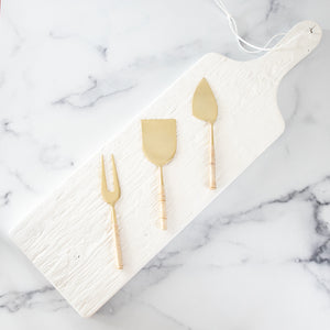 This set of three stainless charcuterie utensils are wrapped with bamboo to compliment our seagrass collection. Perfect to elevate your next dinner party or as a thoughtful hostess gift. The simple beauty of these cheese knives are perfect for everyday use too. The set of three includes: