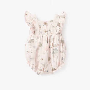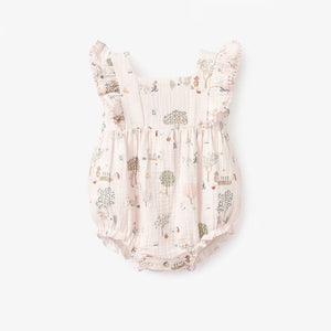 Good for baby, good for environment. Our organic, naturally sustainable muslin is soft and breathable, ideal for outdoor adventures during the warmer months. Created in a whimsical garden picnic print, this muslin bubble romper looks adorable and wears beautifully.
