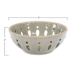 Comes in three different colors. Perfect for serving fruit, place this bowl on a saucer or tray and fill with freshly washed strawberries, blueberries, raspberries or the fruit of choice. The openings will keep the water or juices from pooling in the bottom and make them easier to eat without creating a mess.