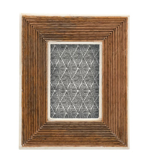 This photo frame is perfect for displaying your favorite memories. Hand-carved, this frame is made out of mango wood, and features a ribbed pattern with a bone edge that matches with any decor styles. Looks great placed on shelves, side tables and dressers for an easy decoration.